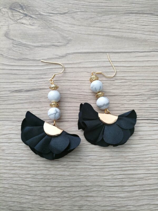 Boucle d’oreille peut être adapter avec d’autres pierres et d’autres colories de fleur en tissus.